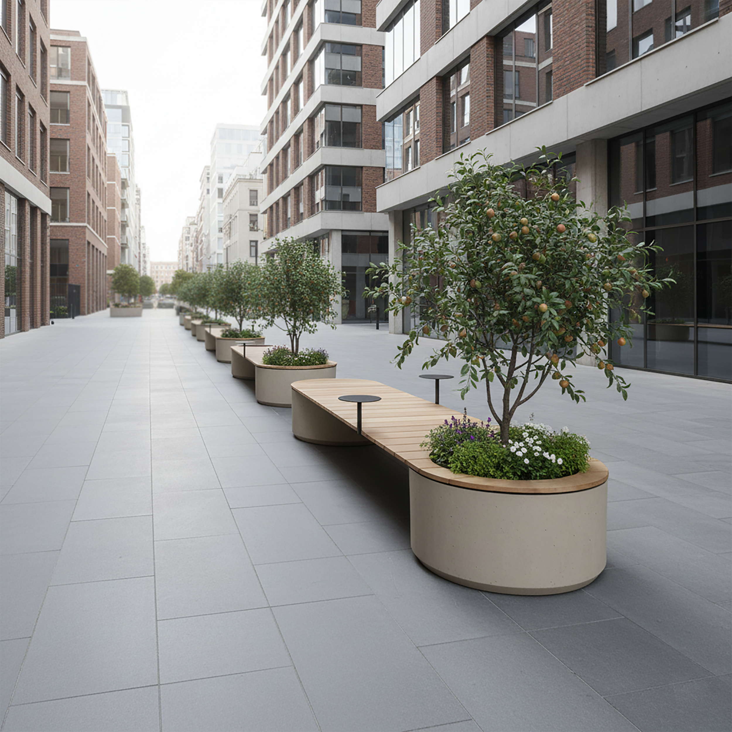 Tento detail činí lavičku ideální volbou pro místa, kde je potřeba kombinovat zeleň s dostatkem prostoru pro posezení – například do vstupních hal, firemních atrií nebo veřejných prostor.
